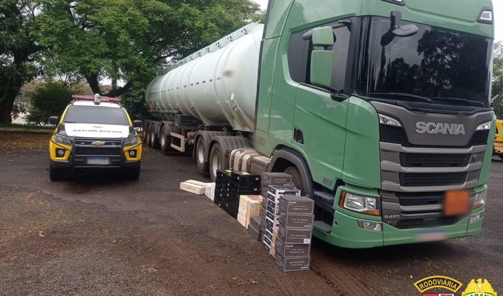 A equipe do Batalhão de Polícia Rodoviária (BPRv), pertencente ao Canil da 6ª Companhia, abordou um caminhão Scania 450 acoplado