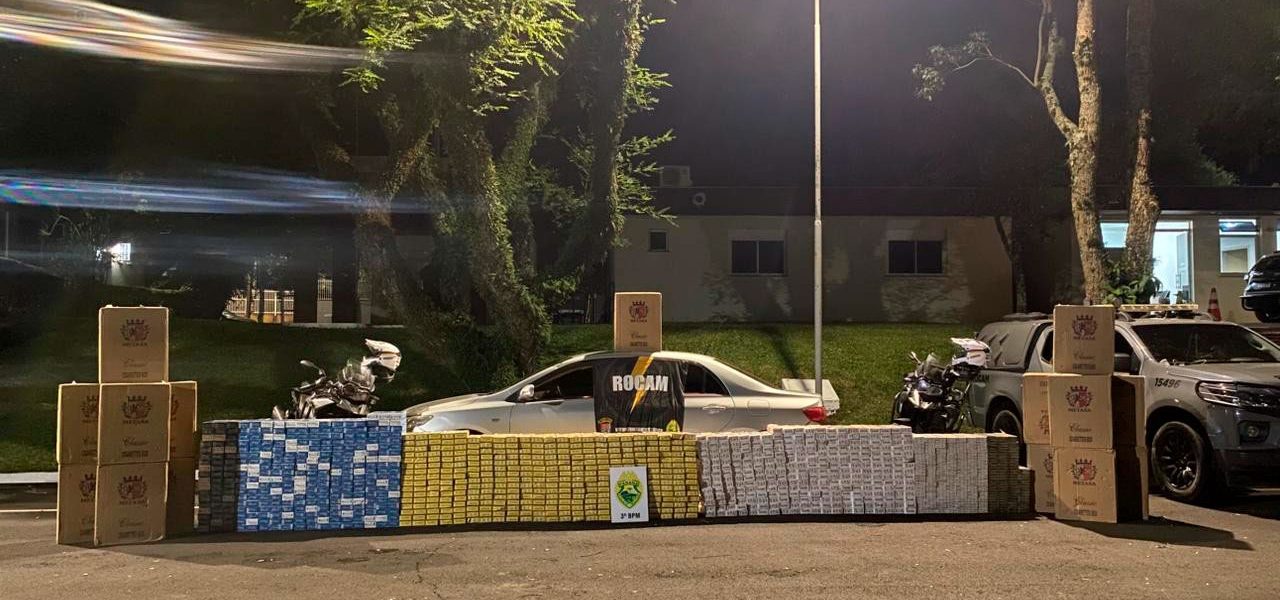 Uma ação da Polícia Militar resultou na apreensão de uma grande carga de cigarros contrabandeados na noite desta quarta-feira (18),.