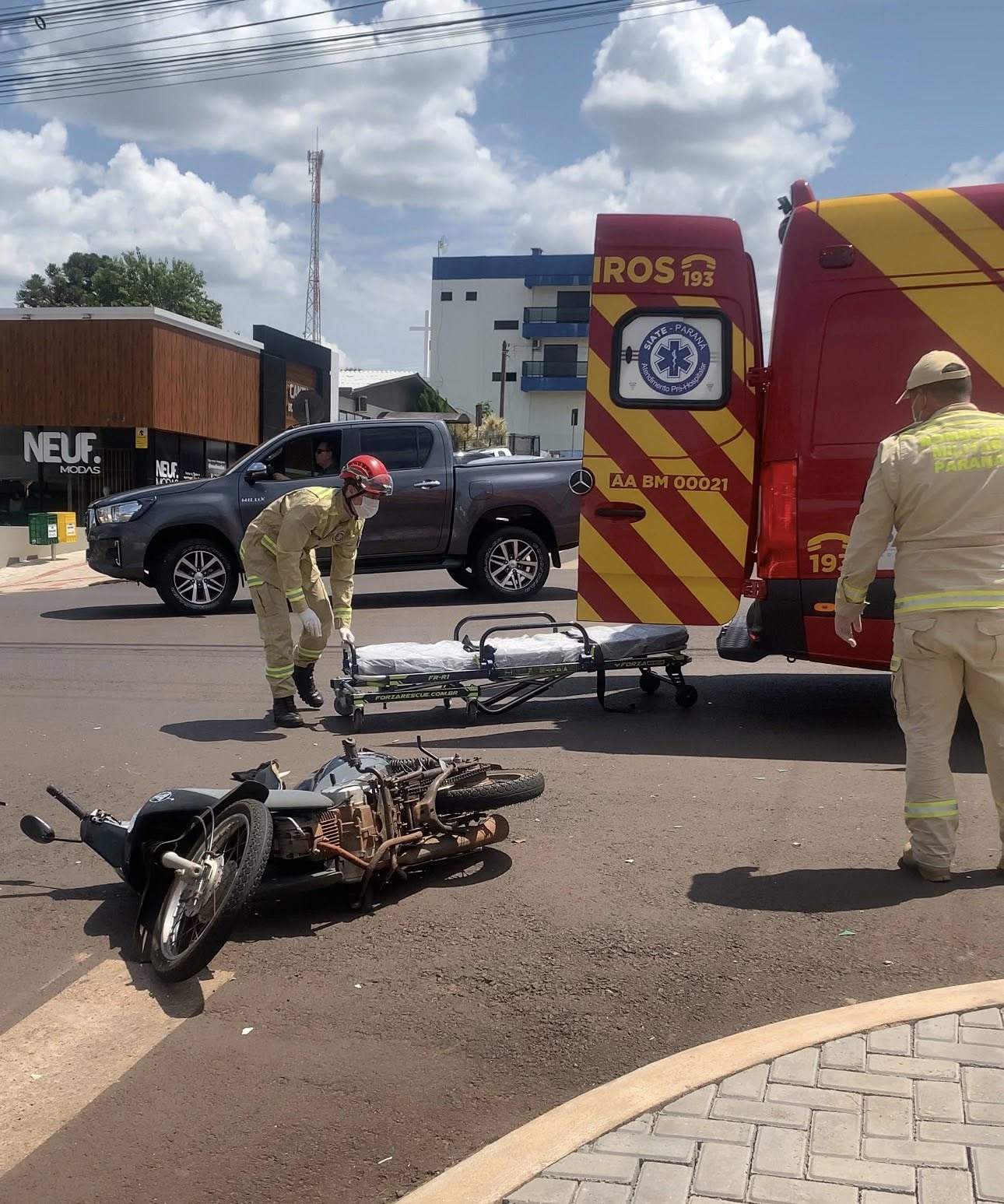 O Corpo de Bombeiros foi acionado e prestou atendimento à motociclista, que sofreu ferimentos e foi encaminhada para UPA.