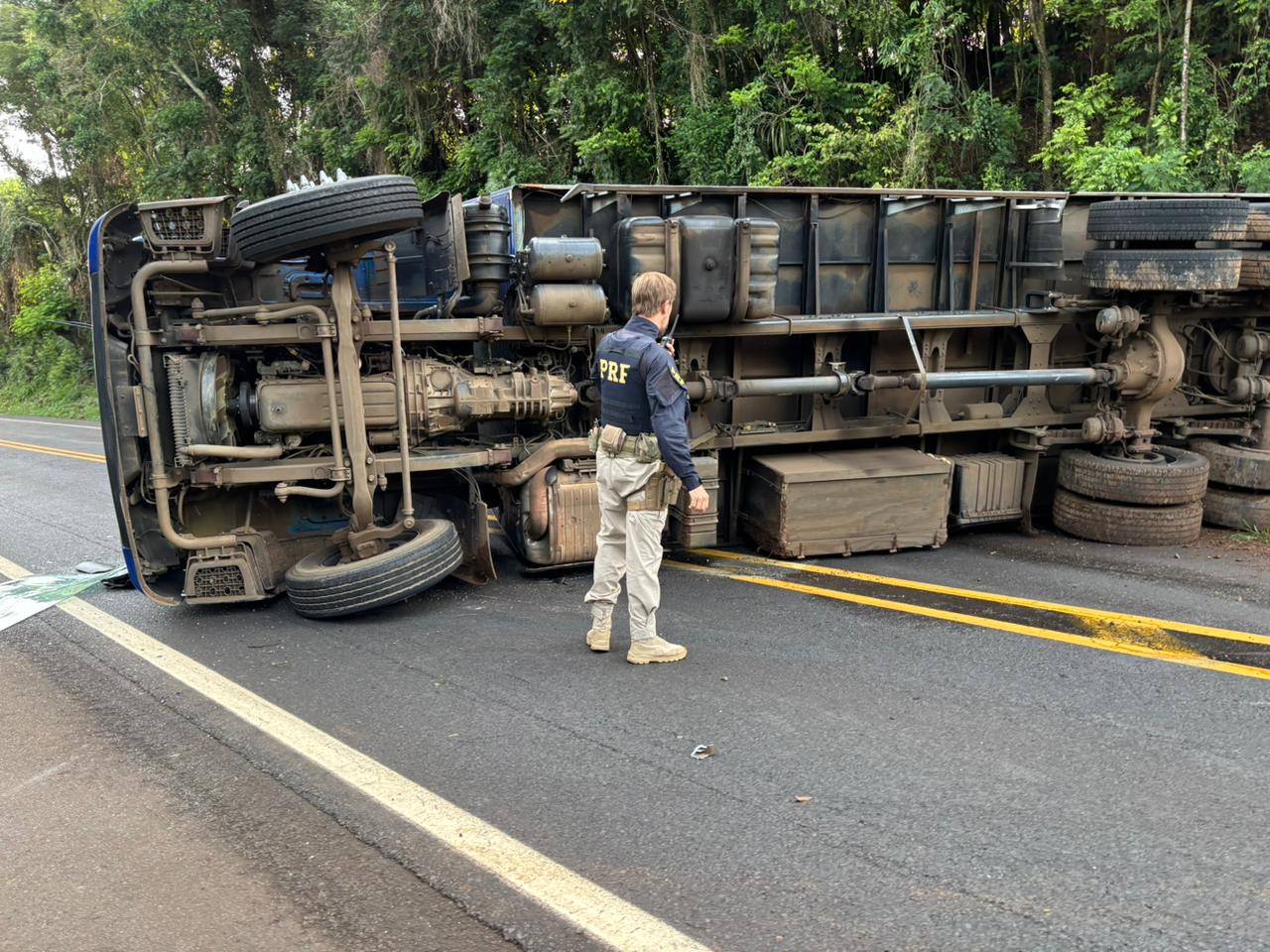 Um caminhão tombou na manhã desta segunda-feira (13), na BR-373, em Coronel Vivida, no Sudoeste do Paraná. O acidente foi registrado pouco antes das 7 horas, em um trecho conhecido como curva do Flor da Serra, ponto onde, segundo socorristas, ocorrências semelhantes têm sido frequentes.
