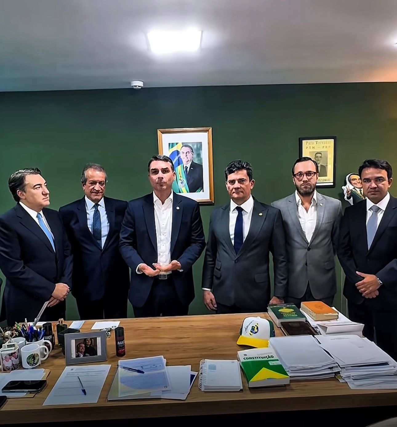 Além de Moro e Flávio, participaram da reunião nomes como o senador Rogério Marinho, o deputado federal Fernando Giacobo, o deputado Filipe Barros, além de assessores e lideranças ligadas ao PL.