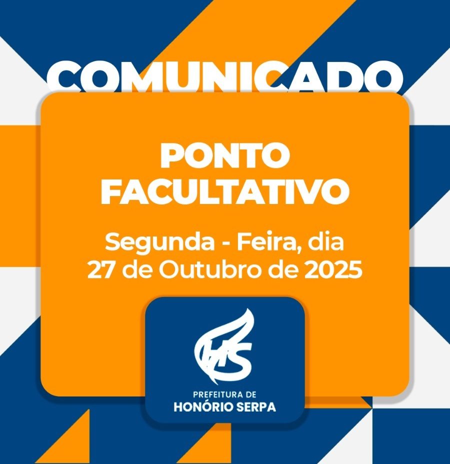 Conforme o Decreto nº 278/2025, a Administração Municipal de Honório Serpa determinou ponto facultativo na próxima segunda-feira, dia 27 de outubro, em razão da comemoração do Dia do Servidor Público.